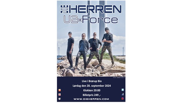 Lørdag den 28. september 2024 kl. 20:00 kan du opleve Die Herren, som bringer U2's største hits til live i Brørup Bio. Die Herren har siden 1991 spillet mere end 2000 koncerter og har gjort U2's sange til deres egne uden at miste den oprindelige ånd og sjæl.